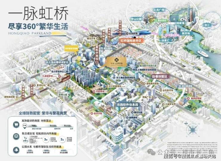 更值得一提的是,17号线不仅是通勤线,更是串联起青浦未来的“黄金发展轴”。它东起徐泾北斗产业基地,西至金泽华为研发基地,而中部核心节点,正是项目所在的赵巷市西软件信息园。这条轴线承载的,是青浦乃至整个大虹桥的科创未来。