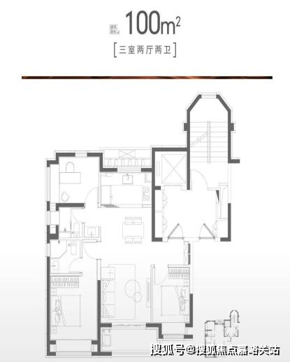 建面约100㎡的三房两厅两卫:作为项目的明星户型,建面约100㎡的空间尺度感进一步升级。客餐厨LDK一体化设计,连接南向宽景阳台,前排楼栋还可享南向开阔视野及河景资源,对于追求生活品质的年轻家庭来说,这个户型既有面子,又有里子。