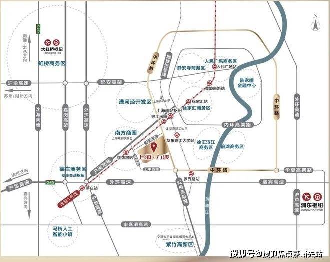 铁路上海南站(项目东北侧约4公里)、虹桥交通枢纽(项目西南侧约18公里)、浦东交通枢纽(项目东侧约33公里),交通出行便利。
