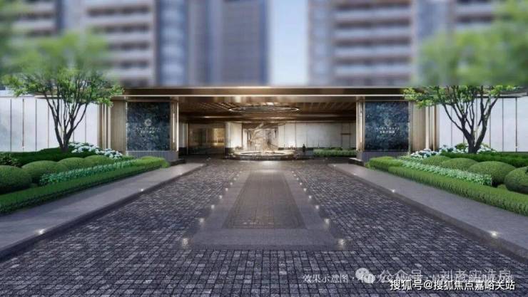 同时,入户大堂立面造型延续了主立面的框与线结合,飘顶弧形雨棚,组成高定入户大堂,增加入户仪式感。