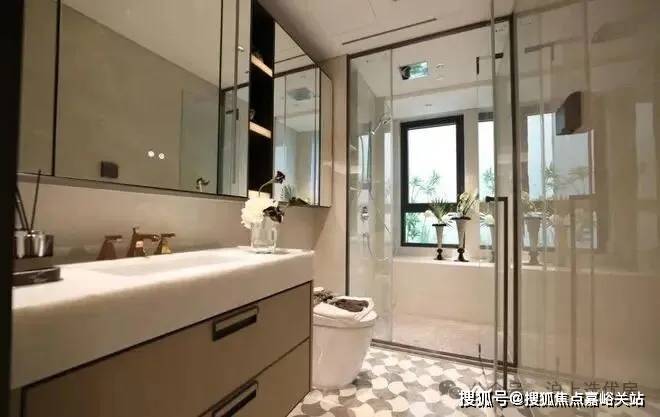来到建面约112㎡3房2厅2卫样板房,设计主打海派风格,开放式厨房和西餐岛台,卫生间地面拼花,石材台面镀金龙头。标准的三开间户型,设计上将传统的过道改为餐厅空间,将公共区域做大了。
