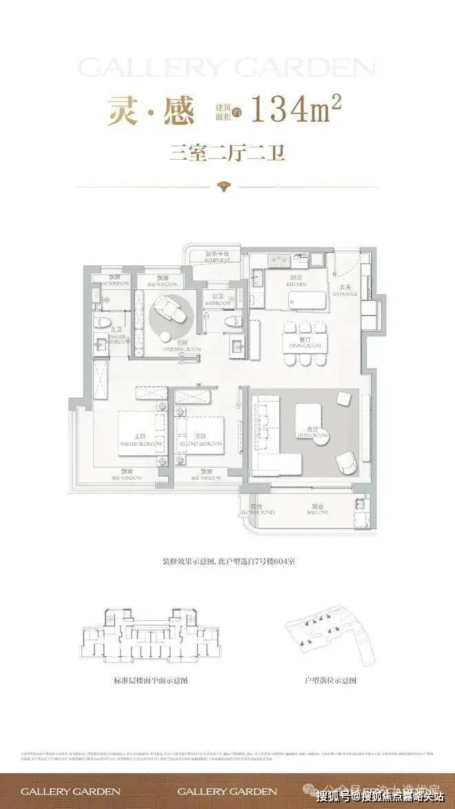 再来看看134㎡3室2厅2卫样板房。比起112㎡户型,这个客厅要宽敞很多,岛台也可以做成独立样式,摆放6人长桌也绰绰有余。主卧采用270度拐角飘窗设计,采光面拉满。