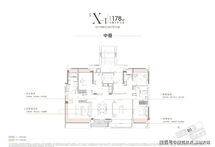 中平户型以四开间朝南的IMAX级采光面,打造出堪比市区豪宅的尺度感。4房4飘窗2阳台的设计,配合双套房布局,一共有三个套房,让每个家庭成员都享有独立私密空间。