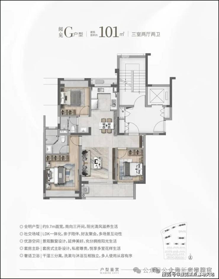 特别是这个 E户型,建面仅约90㎡,对于想住叠加但预算有限的购房者来说,面宽约6.45米,上下动静分离带,是个不错的选择!