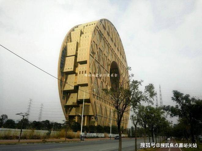 珊姐姐清晰记得第一次近距离探访广州圆大厦时,恰好赶上异木棉盛开的季节。沿着荔湾区沙洛村的塘边漫步,原本沉浸在城市里难得的田园气息中,抬头瞬间便被不远处那座“大金圆”惊艳到。走近细看,大厦的规模远比想象中震撼:138米的高度直插天际,外圆直径达146.6米,内部还嵌套着一个47米直径的小圆,33层楼的主体被金色玻璃幕墙包裹,阳光照射下“金光”夺目,难怪民间会直接叫它“铜钱大厦”。