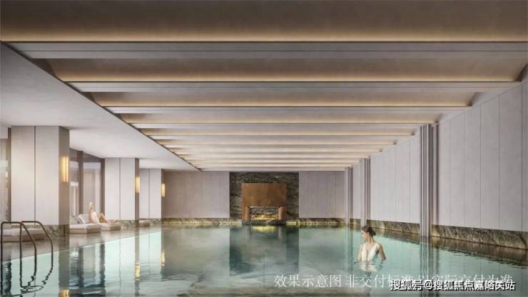 约1500m²恒温泳池会所及 落差达约10米的水幕下沉式园林的打造,在奢石、臻材等元素的空间应用中,让显贵世家的社交场景,相映于粼粼碧波的柔光之中,于方寸之间游离世外。