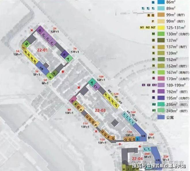 其中:22-01地块占地面积1.1万平方米,总建筑面积5万平方米,包括4栋住宅楼、2栋商业;22-03地块占地面积1.6万平方米,总建筑面积6.7万平方米,包括7栋住宅楼、2栋商业;22-04地块占地面积0.9万平方米,总建筑面积3.8万平方米,包括3栋住宅楼、2栋商业。