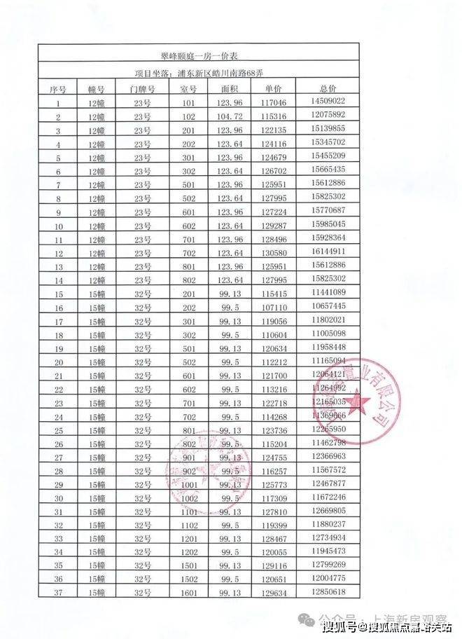 一房一价表如下: