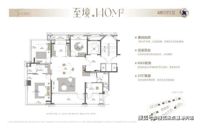 整体布局与140㎡户型基本一致,双南向阳台、独享电梯厅、6飘窗等户型拓展面积超过18㎡!
