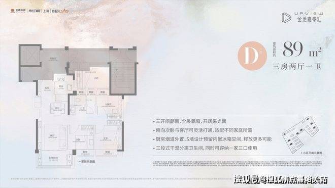 首先,上海金地嘉峯汇官方售楼处电话:400-118-5086√√√【已认证】是建面约89㎡三房两厅一卫(D户型),不仅功能完备,而且很好地把控了总价,约350万起即可上车高配品质三房,堪比市场上110平左右的空间感!