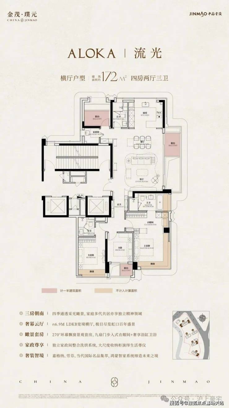 在建面约172㎡户型中,我们可以看到金茂对“三代同堂”生活方式的深刻理解!