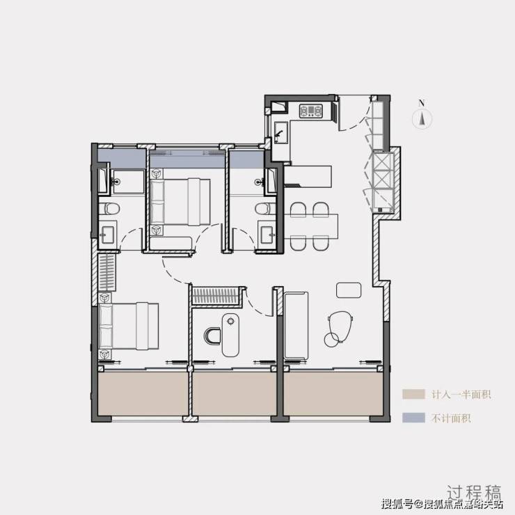 相较当下高层新房约75%的得房率,实际享受堪比120㎡户型空间!