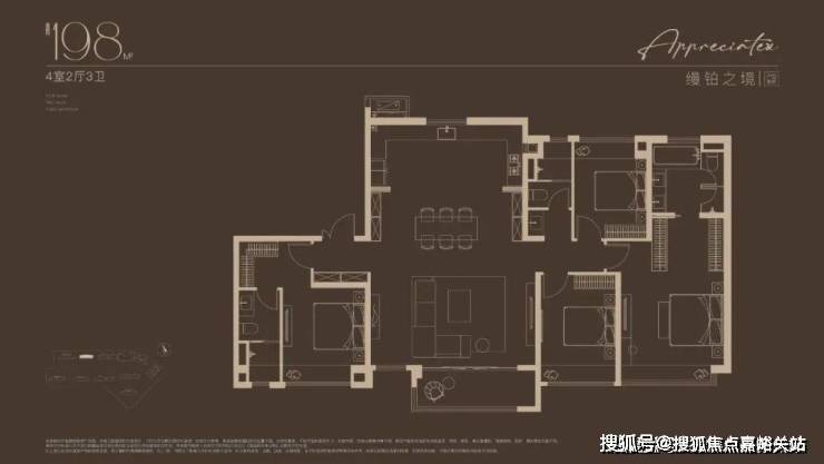 终极改善的顶奢4房!极端宽奢的南北通透户型飞机户型,你能想象到的美好都能在这个户型中体验到。