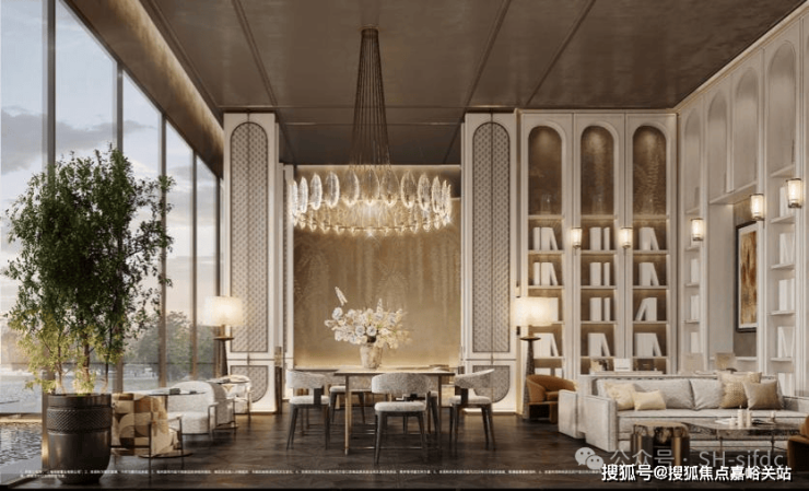 项目同步打造独具海派审美的滨水下沉式会客厅,集健身、休闲、阅读等多重功能于一身,旨为圈层邻里对标还原出隐奢度假酒店的沉浸式体验。