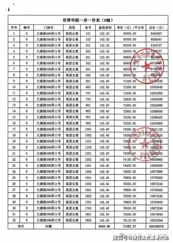 大华公园柏翠项目一房一价表▼