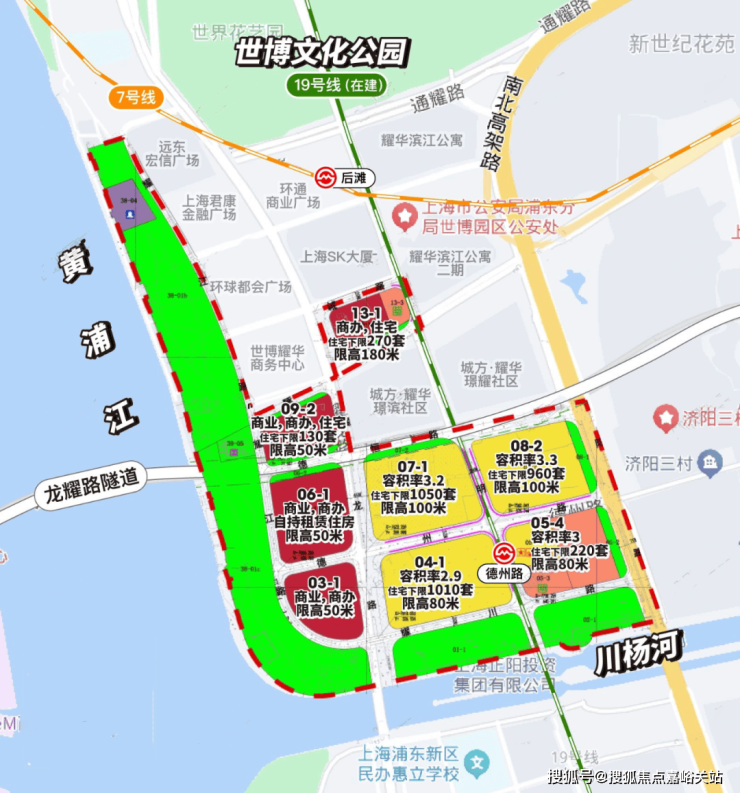 交通上方面: 原有7号线后滩站,串联徐汇滨江、静安寺等核心商圈,但相对来讲,站点近后滩商办,离九宫格略远;但19号线的建设,真正打通了后滩任督二脉, 不仅后滩站双轨交汇,还规划了德州路站,就在九宫格门口。