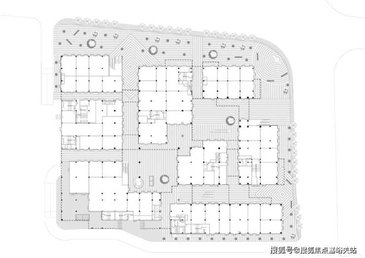 首层社区尺度的流线上端坐落着一个可发生丰富社交活动的圆环。