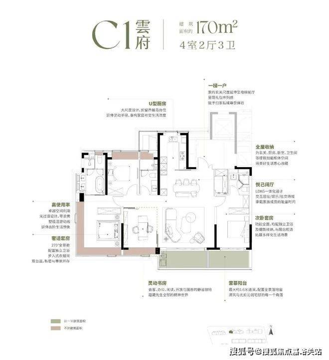 随后推出的170㎡“悬浮全景舱”,直接引领上海高端户型革新—— 南向 15.8 米四面宽让每个空间都享阳光平权,深 U 型厨房预留西厨岛台,约8.35 米双阳台兼顾功能与情绪价值,双套房 + 270° 全景窗 + 三卫设计,更将 “新平权主义” 落到实处,让每位家庭成员都有私密空间;