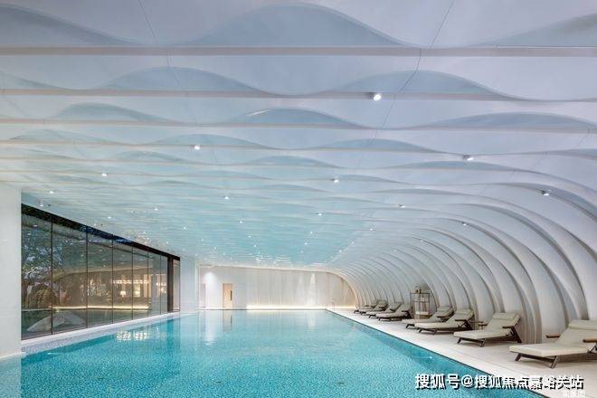 此后,翡雲悦府更是持续用“实景更新” 保持新鲜感:9 月开放的雲镜 CLUB 泳池,堪称“泳池界的天花板”——25×10 米恒温泳池汲取扎哈・哈迪德曲线美学,漂浮式玻璃边框让水体与浦东天际线无缝衔接;南斯拉夫白石材从巴尔干半岛原矿开采,经棱镜切割工艺雕琢;定制三曲面铝板用3D 整铸技术打造,搭配智慧水位调节与逆流循环系统,让游泳成为“疗愈级体验”。