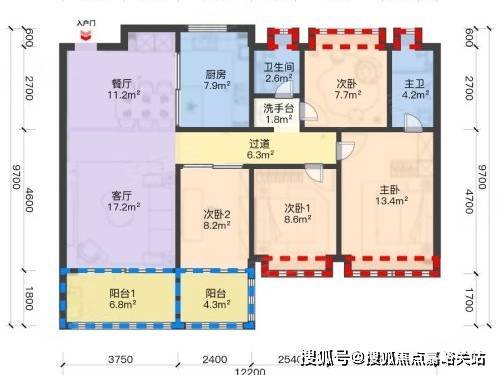 1. 建面约 113㎡ 三房两厅两卫(入门爆款,一梯两户)