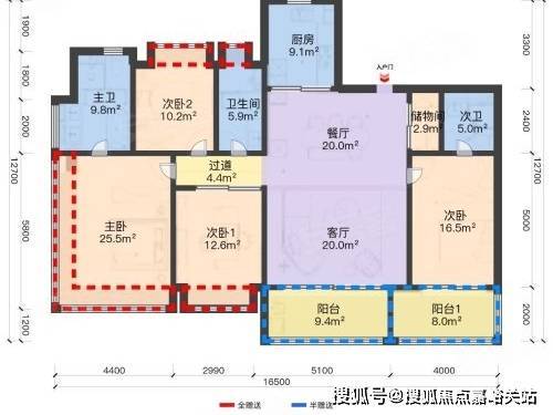 优点:四开间朝南 + 超大面宽 + 双阳台 + 精装交付,采光通风与景观视野俱佳,动静分区合理,适配三口之家或二胎改善家庭,自住品质与资产价值双优。