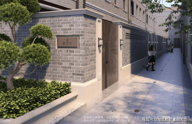 一街:繁华街为功能型景观中轴,尊享出入归迎礼仪;人行出入口的传统红砖元素、金属格栅装饰、复古拼花的石英砖营造归家氛围。