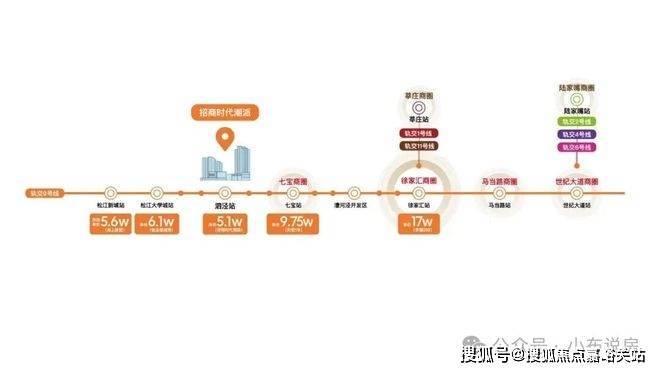 作为9号线泗泾站新一代超级TOD,招商时代潮派与地铁商场直线仅约200米。