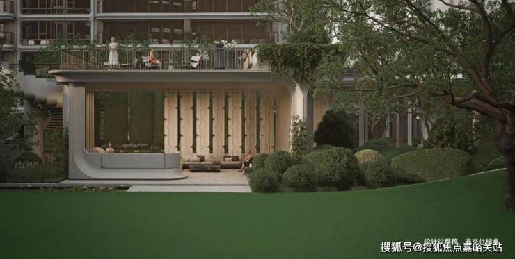 一层:功能与景致的共生,以错落有致的景观节点为核心,巧妙融合架空层功能空间,既满足休闲、互动需求,又让自然绿意渗透生活场景,实现功能与美学的平衡。