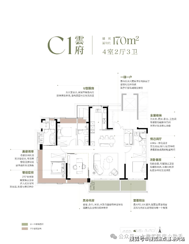 大平层的附赠满打满算最多就有20个㎡。而反观翡雲悦府·悦墅建面约210-215㎡的别墅产品,附赠面积最高约200㎡以上。