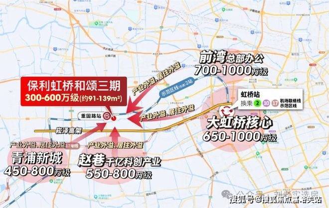 从周边区域房价来看,保利虹桥和颂售楼处电话:400-8894-986VIPLINE24小时热线即刻预约快人一步️️️东面2站之隔的前湾,房价已达700-1000万级;徐泾650-1000万级,赵巷550-800万级,即便下游的青浦新城,房价也处于450-800万级。