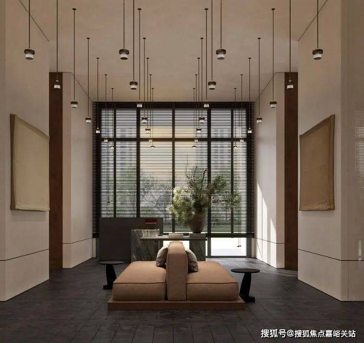 公区的打造上,架空层泛会所+泳池会所的双会所设计:大堂除了给业主带来更强的仪式感外,项目还打造了架空层泛会所,并且将室内精装标准延伸至架空层内部,结合约5.1米的层高,打造了能满足业主足不出楼的多元化社交需求。