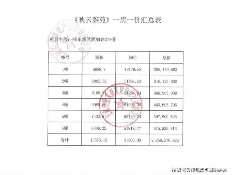 项目一房一价表▼