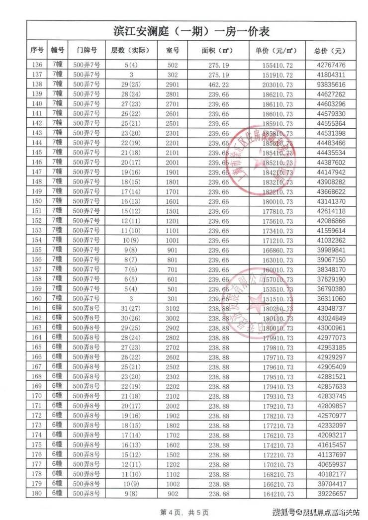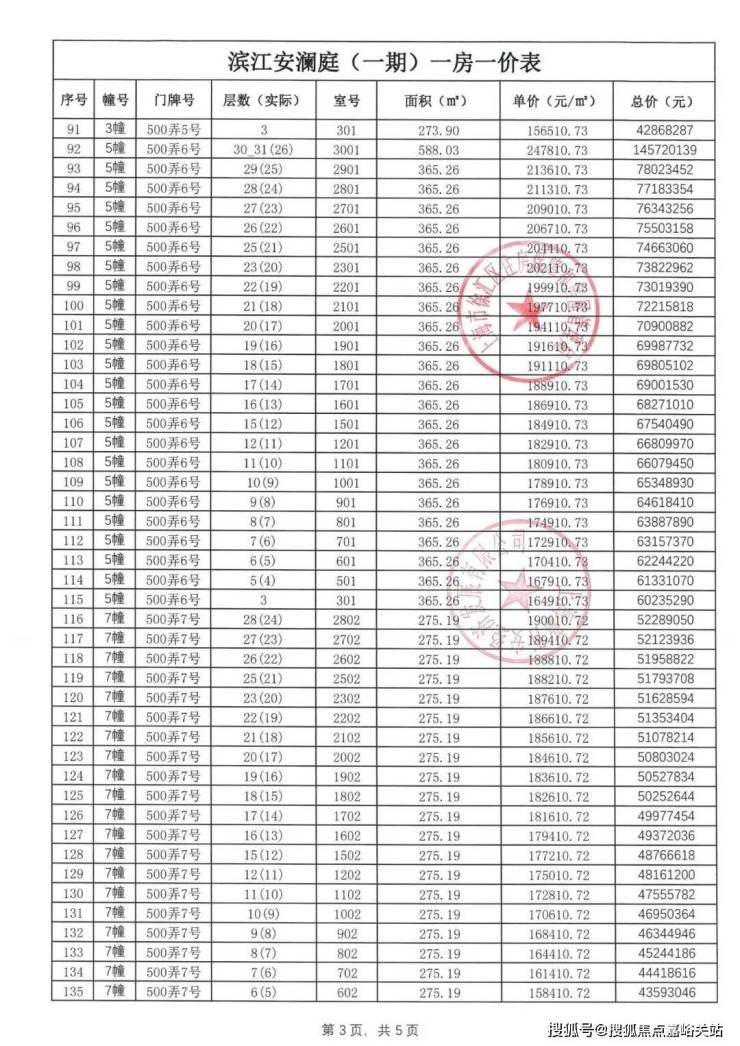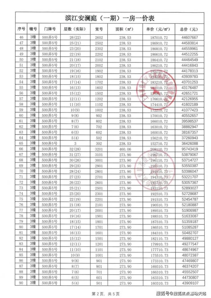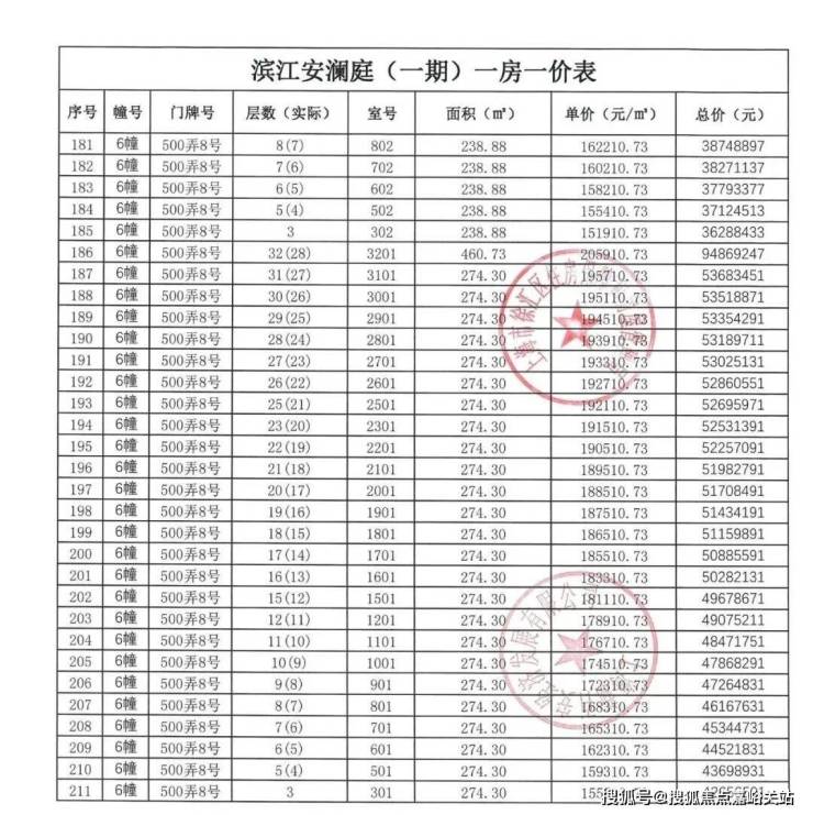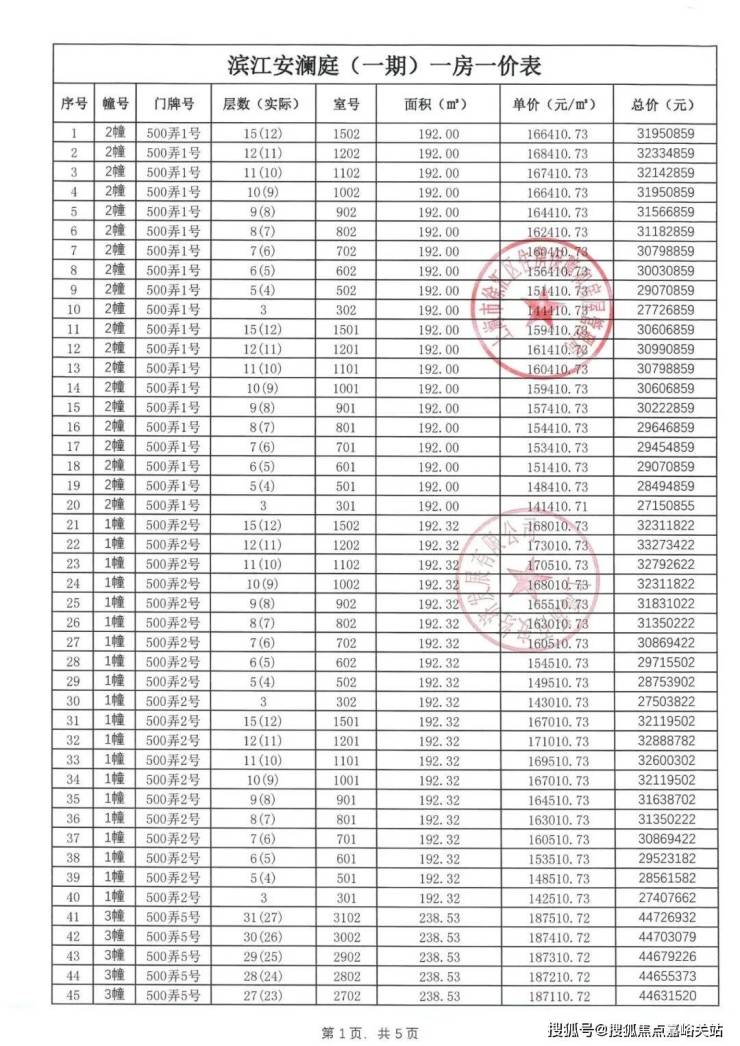 一房一价表