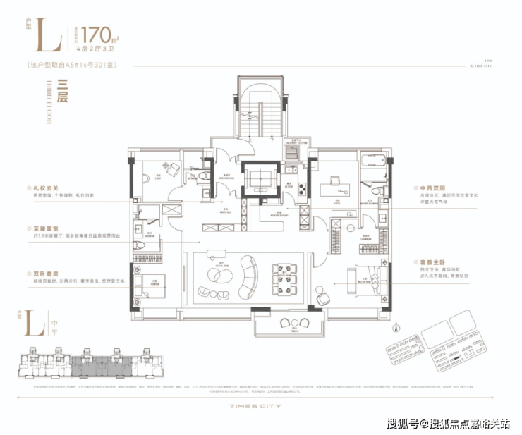 华润置地时代之城高层产品将百平上下的改善户型做出了轻奢级的居住体验,把约133㎡的改善四房做出了豪宅的尺度感。