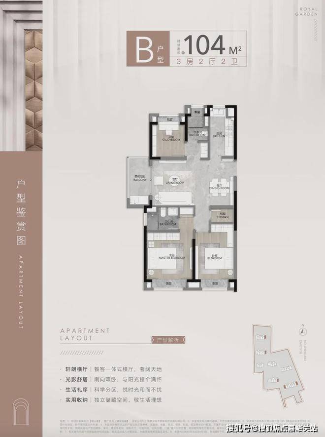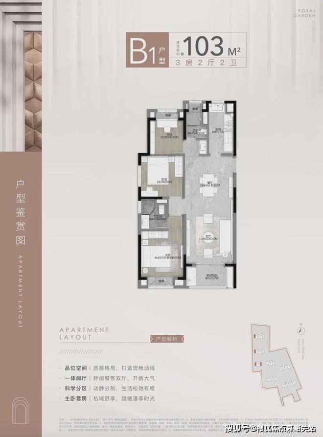 第一个亮点, 就是动静分离,功能区和休息区互不干扰,客餐厅、厨房等公共活动区集中在一侧,卧室等休息区全部一侧,保证了私密性!