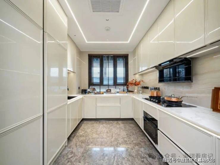值得一提的这次精装标准配置拉满!厨房配备博世五件套、上海首个方太消毒拉篮碗筷收纳、卡慕白大理石岛台等;卫生间均为唯宝洁具;甚至客厅背景墙全部石材交付,匠心十足!