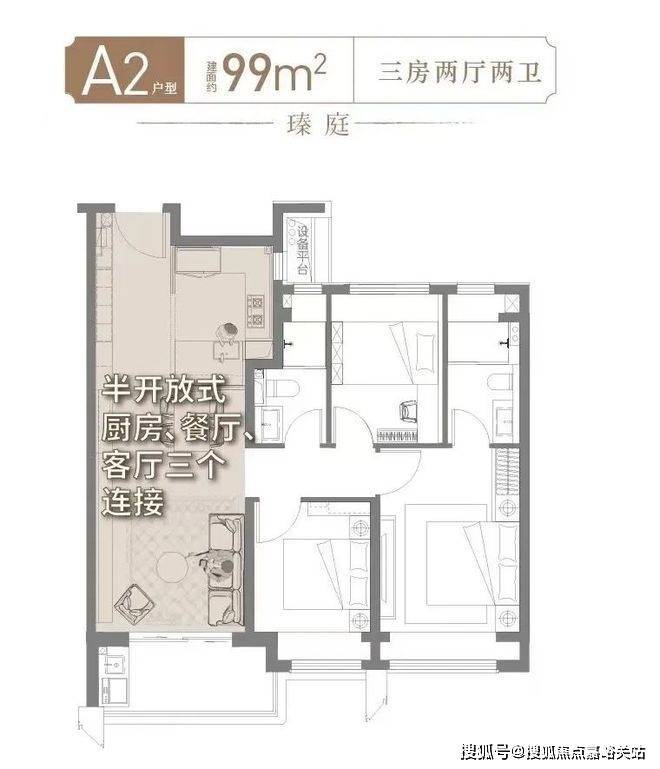 细节一:99㎡户型开放设计,核心区利用率MAX!