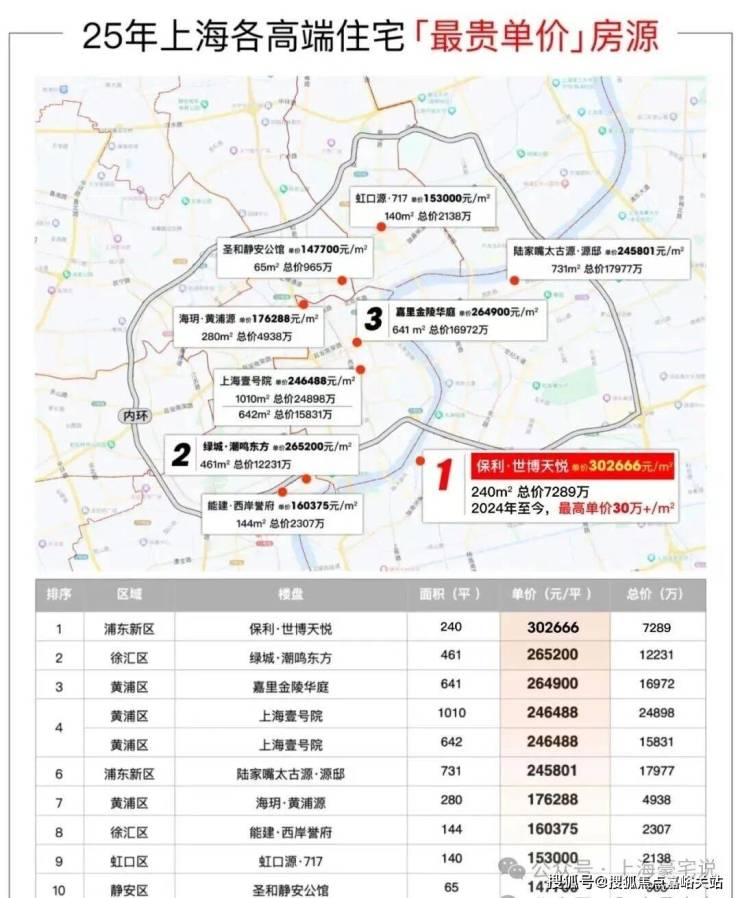 ·2025年上海目前各高端住宅「最贵单价」房源30.27万/㎡(3-22-1902,数据来源近两年开盘项目一房一价表)