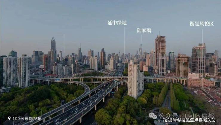 二十三公顷延中绿地广场公园,上千栋衡复风貌的红色建筑屋顶;东望陆家嘴的城市天际,西瞰市中心繁华光景——