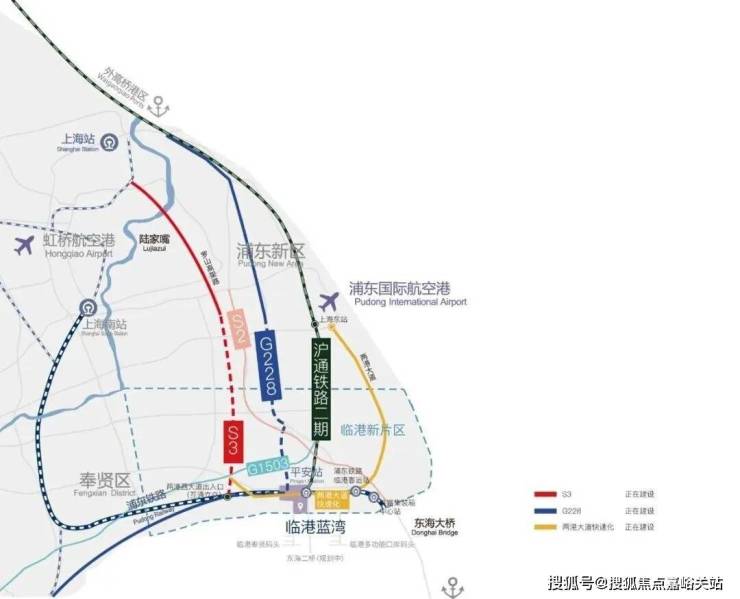 轨道交通16号线、27号线(招标中);南枫线、曹奉线(规划中)S2、G1503、S3沪奉高速(在建);六大交通线路,形成通达全球的门户枢纽,三横两纵深度串联全球城市格局;