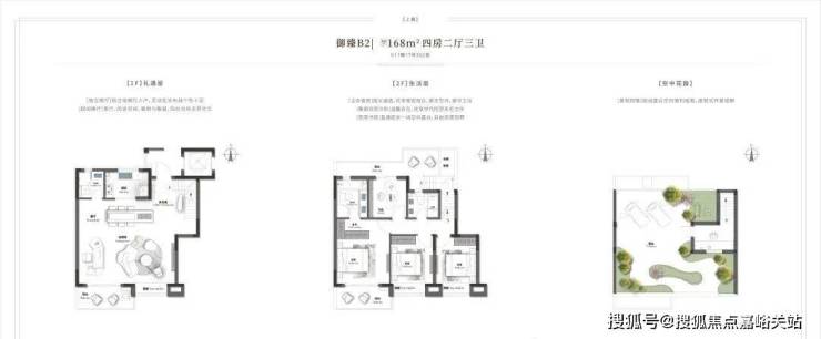 景观巧妙利用高差以中式院落空间递进关系为切入点,打造“【府】-【园】-【宅】”三重空间序列,形成“私密-半私密-半公共-公共空间”,打造三进归家动线。