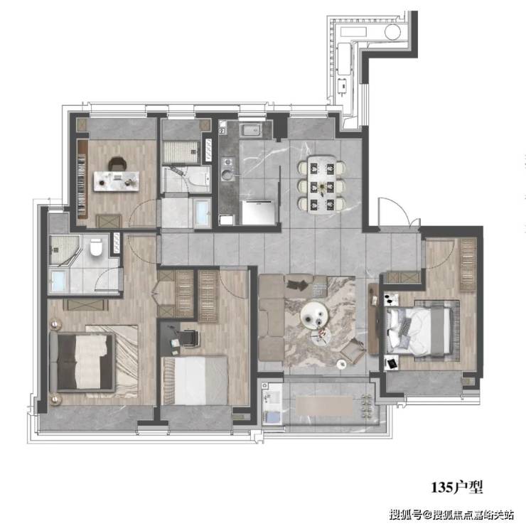 建面约135㎡4房2厅2卫户型图: