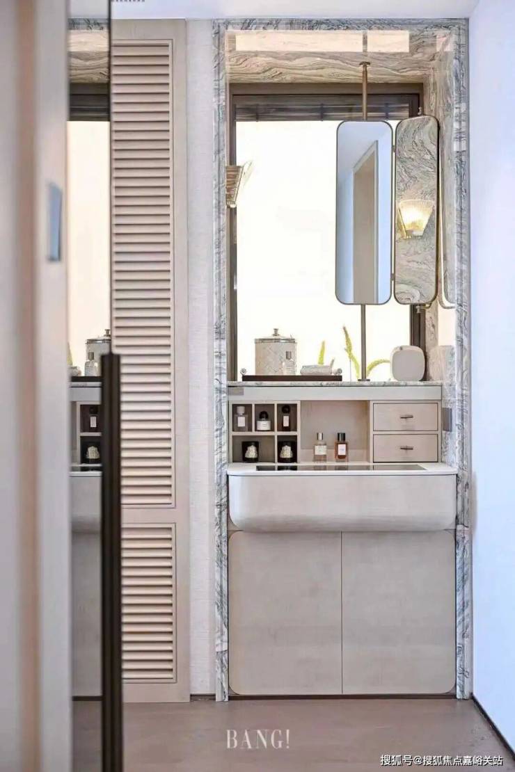 兼具实用性及美观度的主卫三飘窗设计,既可以作为功能台面使用,方便摆放日常使用的洗浴用品,还可以改造为隐藏的收纳空间,将日常杂物轻松归置,还空间更整洁通透的视觉体验。