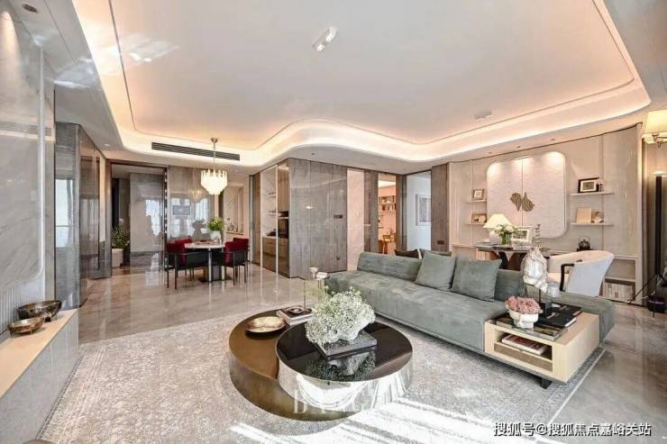 同时,室内空间大量选用珍贵石材及影木木饰面,增加整体的高级质感,让奢华气息凝练于细节之中。