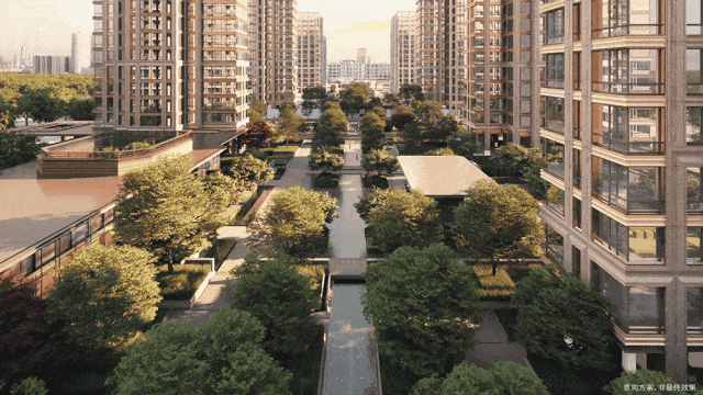 更难得的是,在未来,这些绿色空间将与建筑融合,形成流动的有机整体。一楼的全域架空层设计,让室内外空间自然过渡。超275米的南北中央景观轴,将各个园区串联成一条绿色脉络。