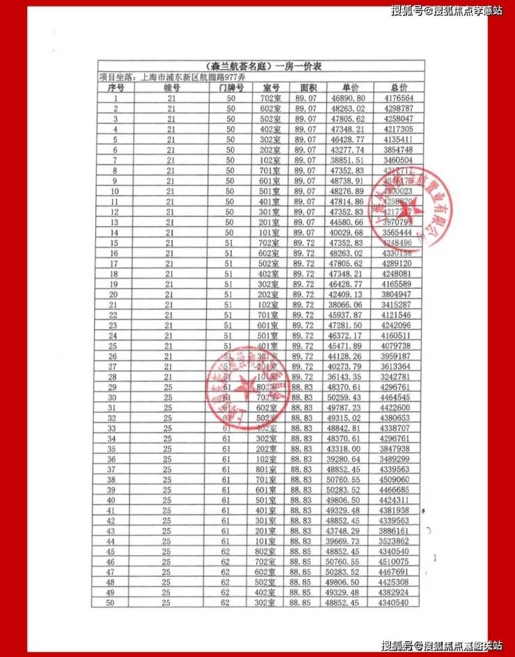 项目一房一价表▼