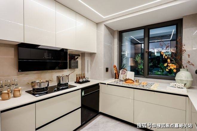 全系U型厨房设计,三个操作台面,空间宽敞,对于经常做饭的家庭来说,真的超爱!