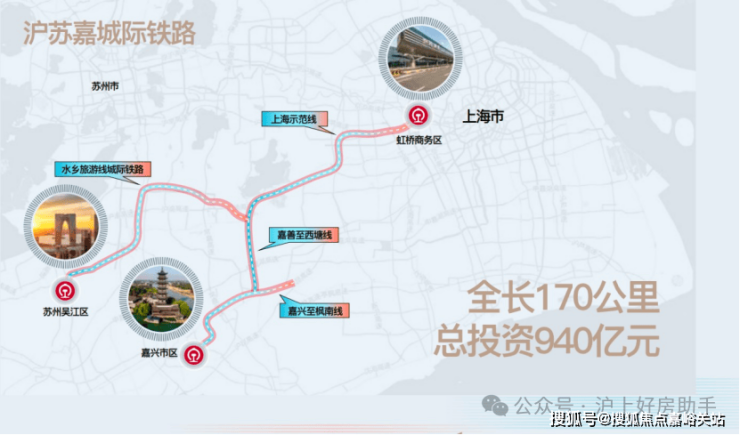 当然映辰周边还有一个高能级铁路——沪苏嘉城际铁路,上海境内的上海示范区线串联虹桥国际枢纽、青浦新城、华为研发基地、长三角演艺中心、美的全球创新园区、西虹桥科创中心、安踏全球零售总部等多个产业高地,以后从大名城映辰出发,刷公交卡坐城际铁路就可以去沿线的名企上班了。
