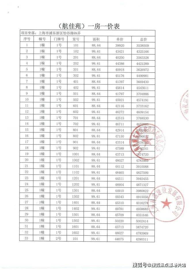 项目一房一价表