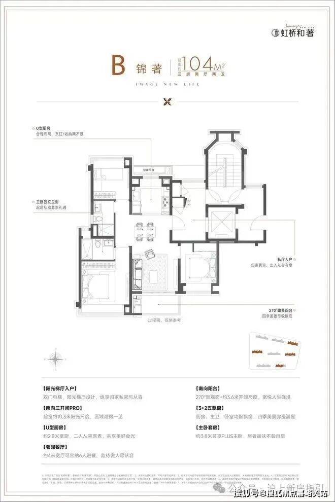 保利虹桥和著售楼处电话☎:400-856-9058☑️☑️建面约104㎡3房,在建面94㎡小3房优点上,又进一步升级了尺度感,约10.3m的南向面宽,为室内带来了出众的采光面和尺度感,这个户型无论从实用性、尺度感,亦或是视野、采光、私密性来说,都做得相当优秀。保利虹桥和著售楼处电话☎:400-856-9058☑️☑️